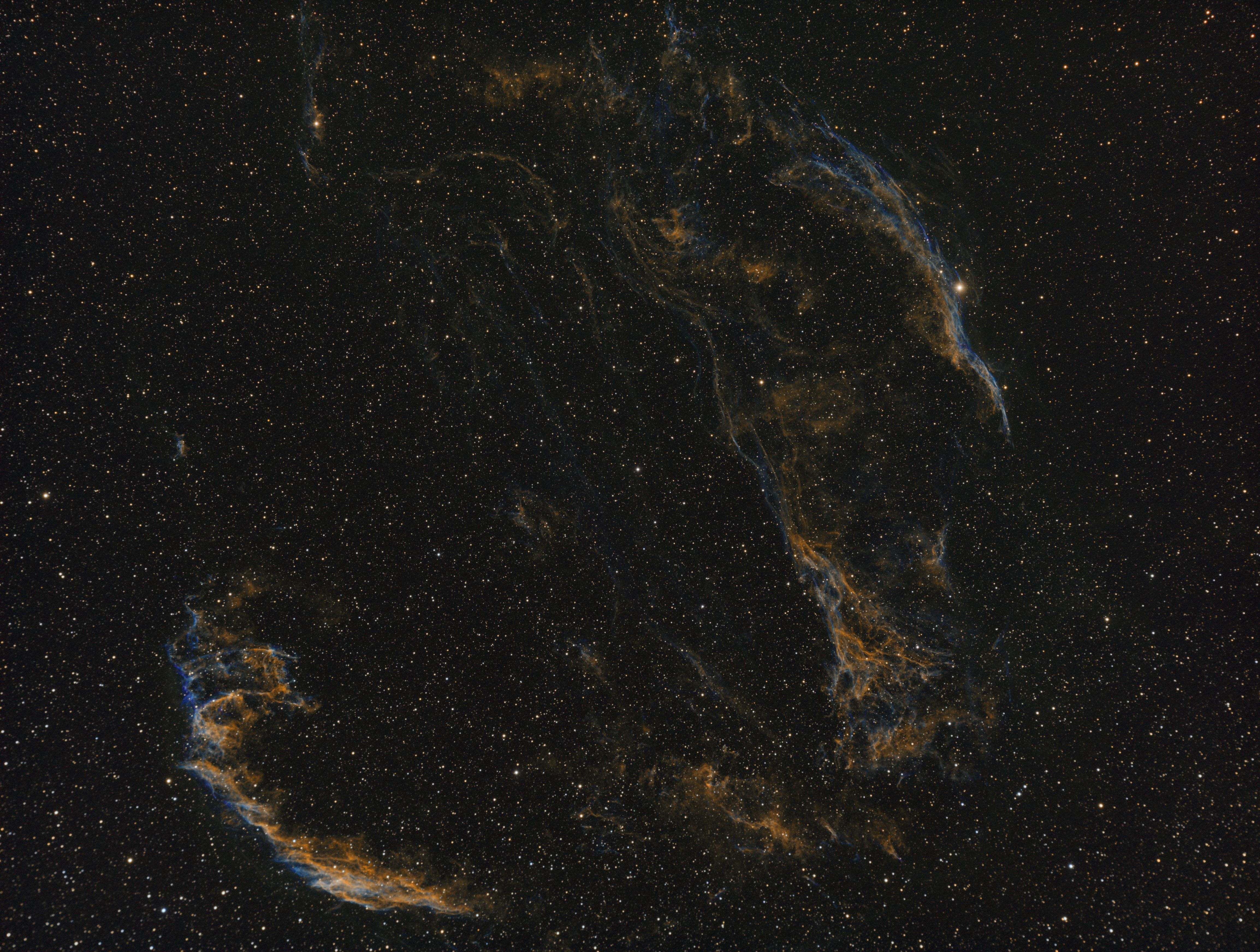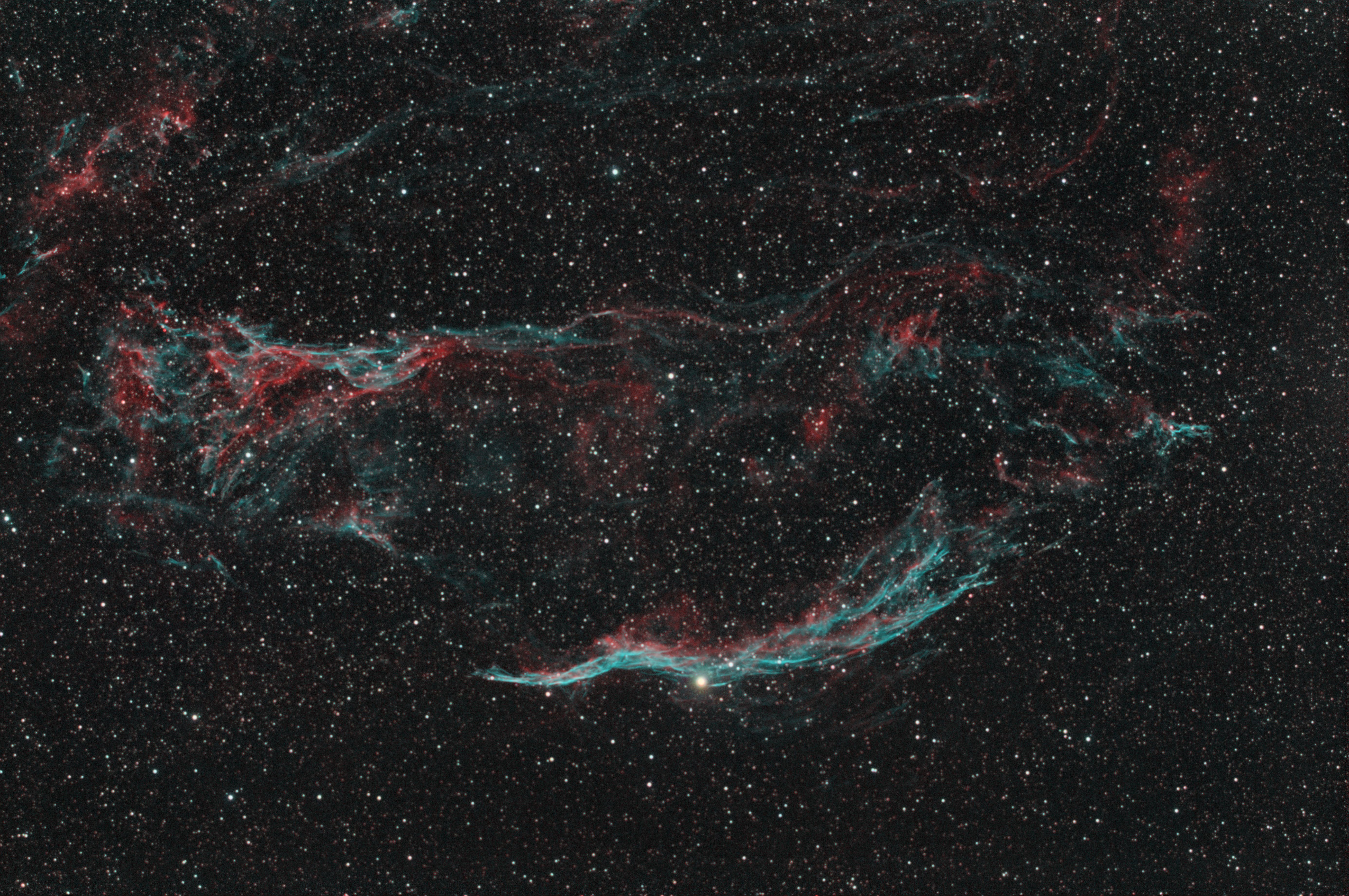 Dans une composition HOO, le rouge est attribué à la couche Halpha, les couches bleue et vertes étant attribuées à l’O3, ce qui donne des couleurs presque « naturelles » puisque le Halpha émet en rouge et l’O3 en vert.