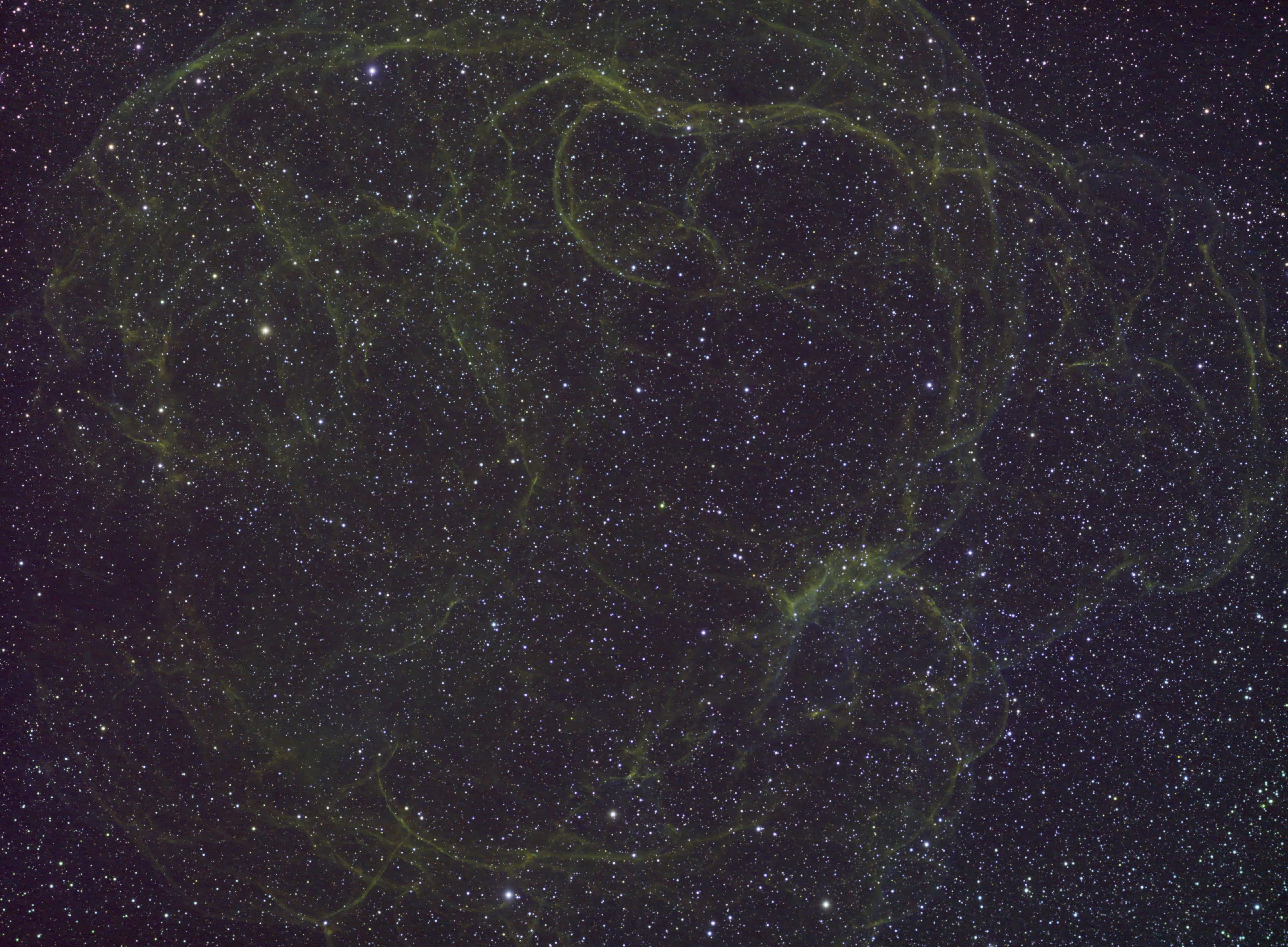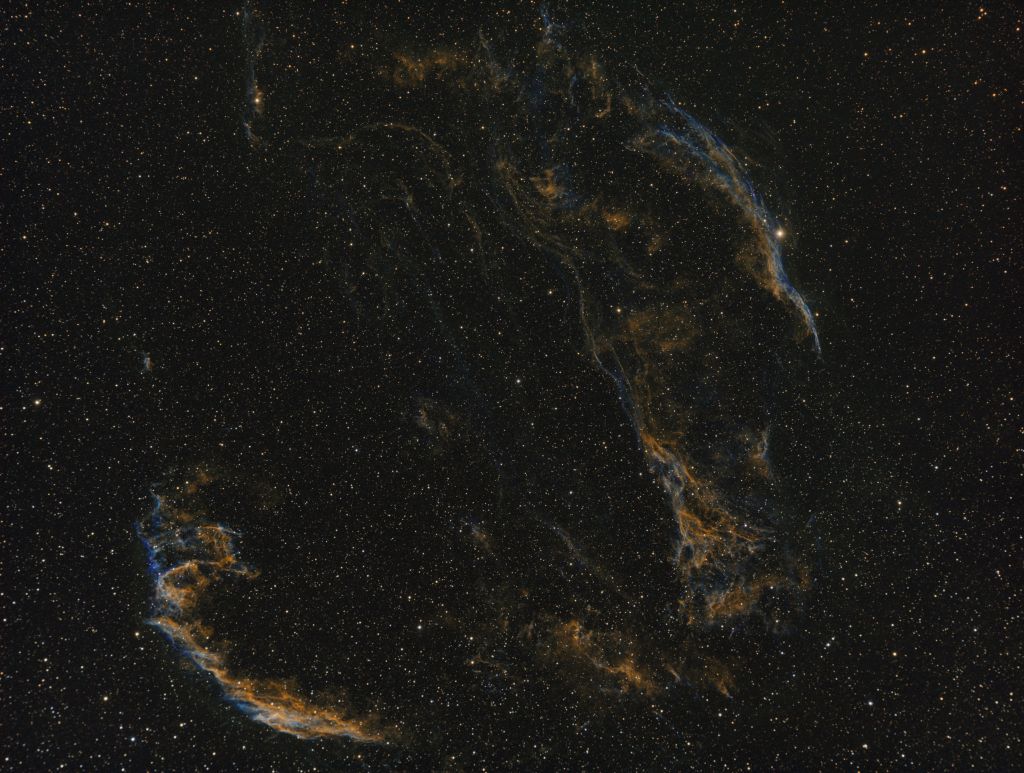 Ensuite les trois couches sont assemblées pour réaliser une photo couleur, en attribuant une couleur à chaque couche. Si on utilise bien sur du rouge sur la couche rouge, du vert sur la couche verte et du bleu sur la couche bleue en trichromie classique (en rajoutant une 4ème couche de Luminance), c’est plus abstrait pour les filtres interferentiels SHO.